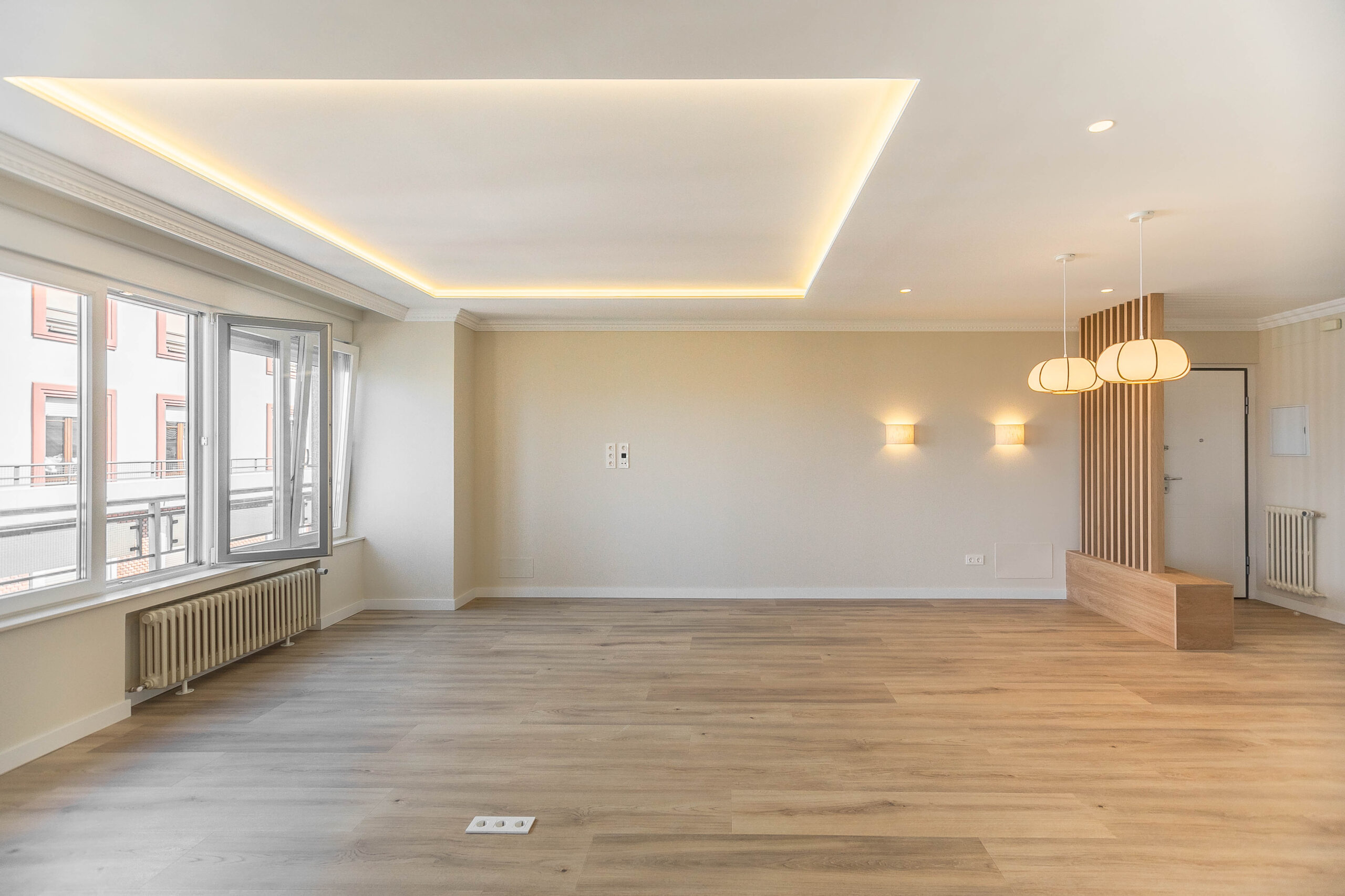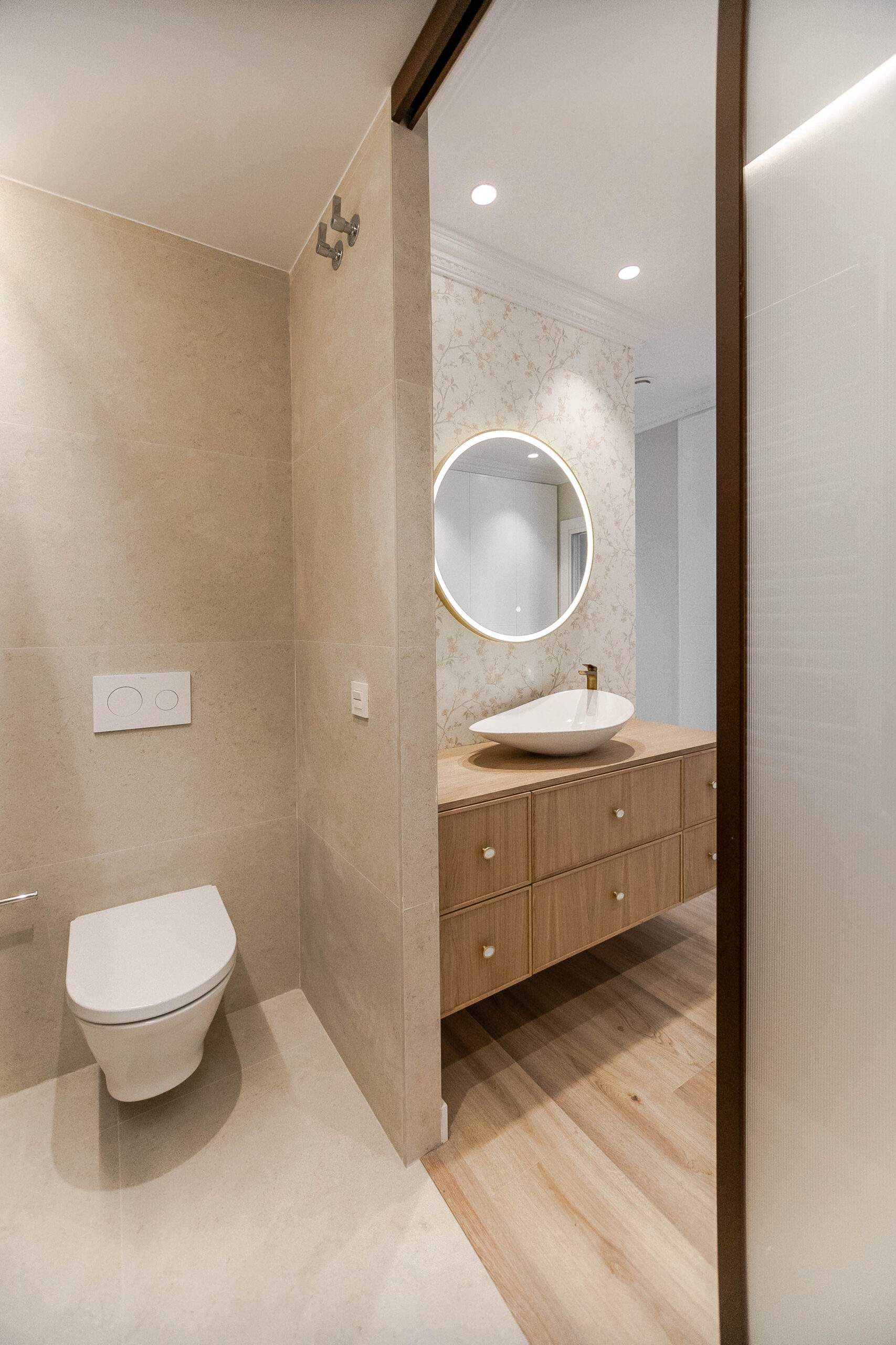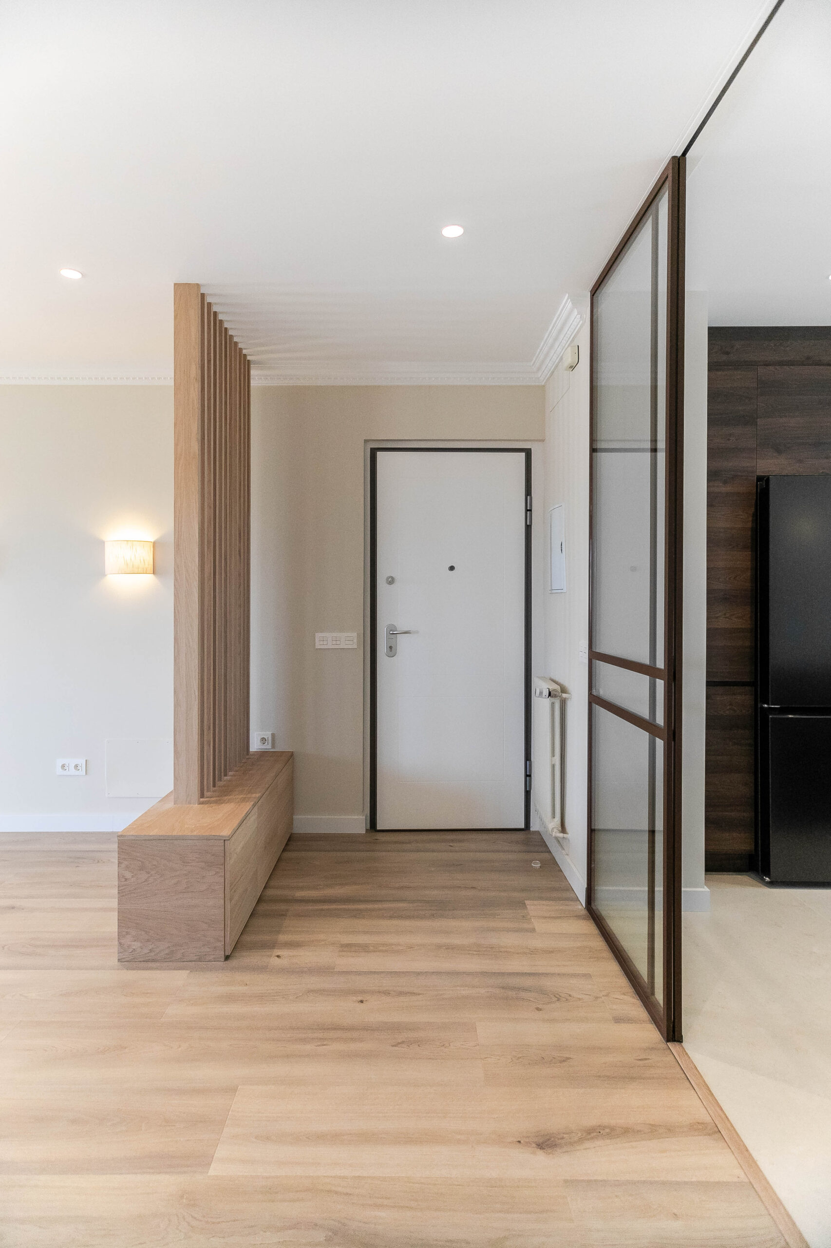 Se realizó una reconfiguración de la distribución interior, optimizando los espacios y generando ambientes más amplios, luminosos y conectados entre sí. La intervención incluyó la renovación completa de la vivienda, incorporando nuevos pavimentos que aportan continuidad y calidez a todas las estancias, se mantuvo el sistema de calefacción existente, llevando a cabo la reubicación y sustitución de radiadores, incorporando nuevas unidades para mejorar la distribución del calor y la eficiencia del sistema.