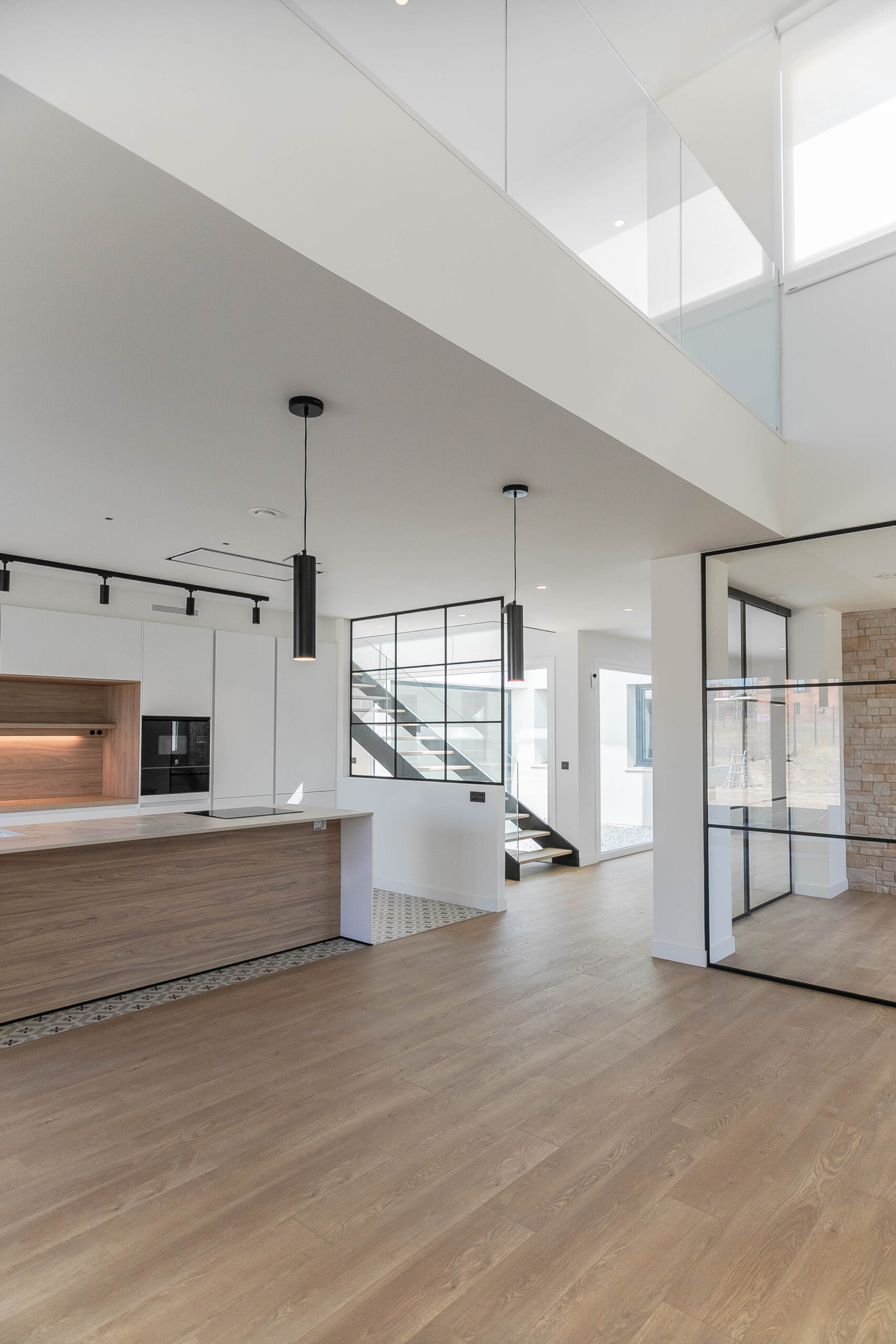 En el diseño interior destacan los espacios abiertos y funcionales, la calidez de la madera a juego con muebles de diseño y cristaleras para generar mayor amplitud, un diseño pensado para ofrecer confort, eficiencia y bienestar.