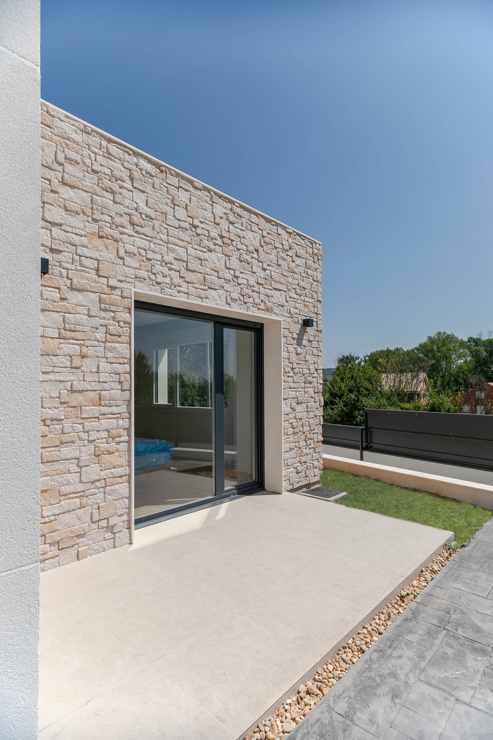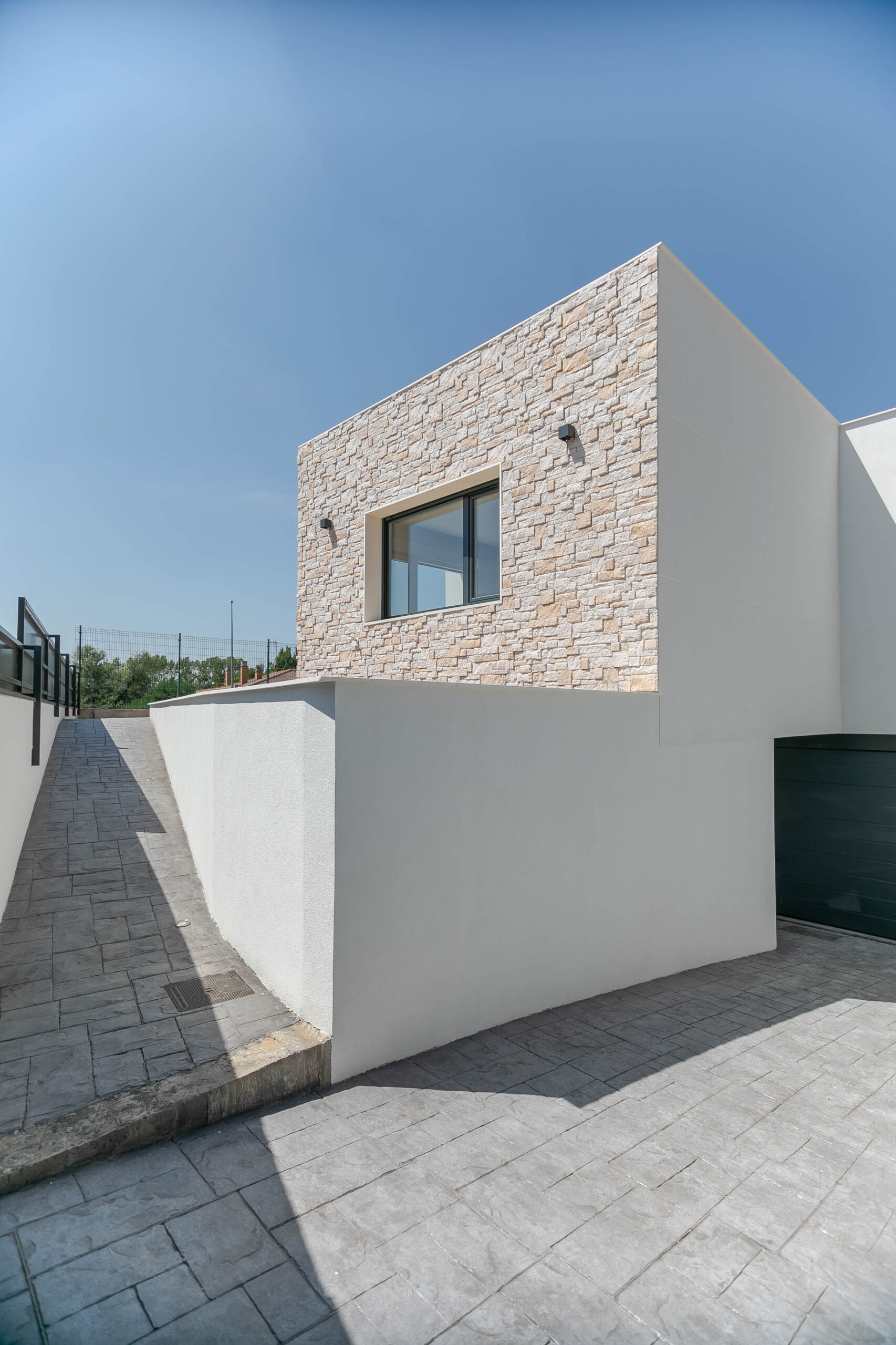 La fachada se ejecuta mediante Sistema de Aislamiento Térmico por el Exterior (SATE) , combinado con revestimientos decorativos de piedra, proporcionando una estética moderna junto con un alto nivel de aislamiento térmico y eficiencia energética. Las carpinterías exteriores cuentan con ventanas de altas prestaciones con triple acristalamiento, garantizando un excelente aislamiento térmico y acústico, a su vez que la vivienda dispone de sistema de climatización mediante aerotermia, que alimenta un suelo radiante, proporcionando un elevado confort térmico, una distribución homogénea de la temperatura y un consumo energético eficiente.